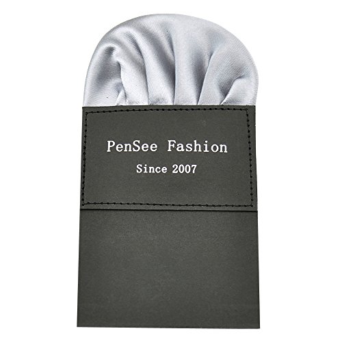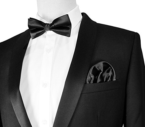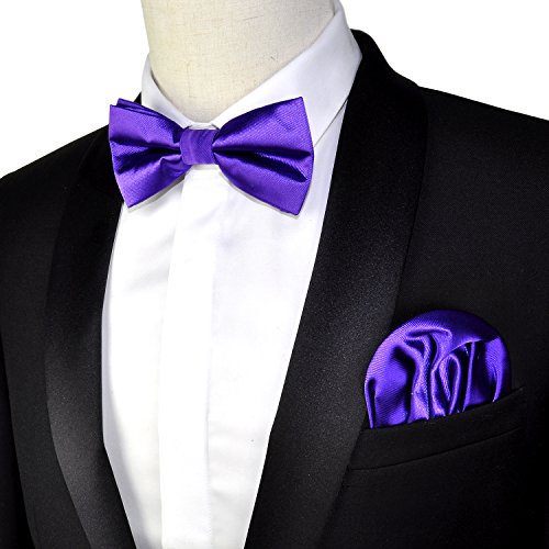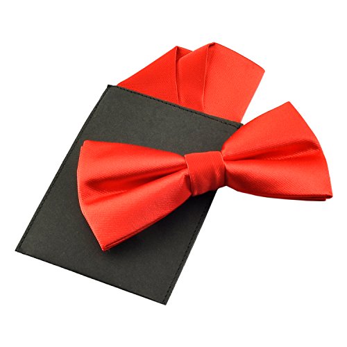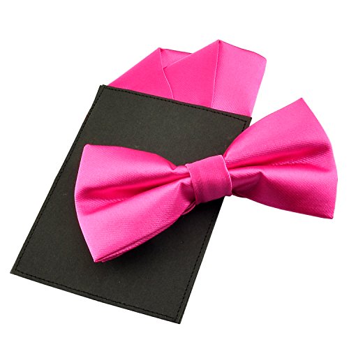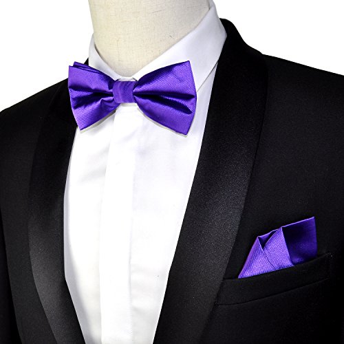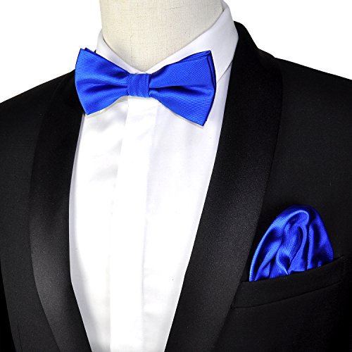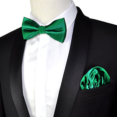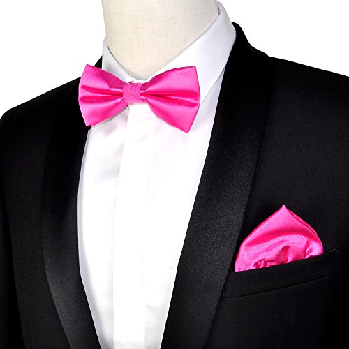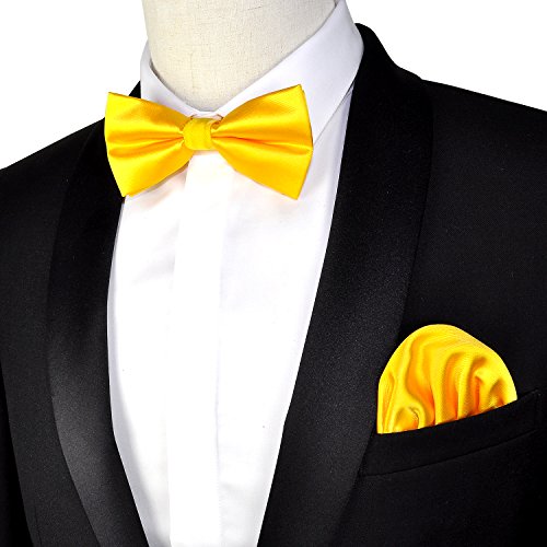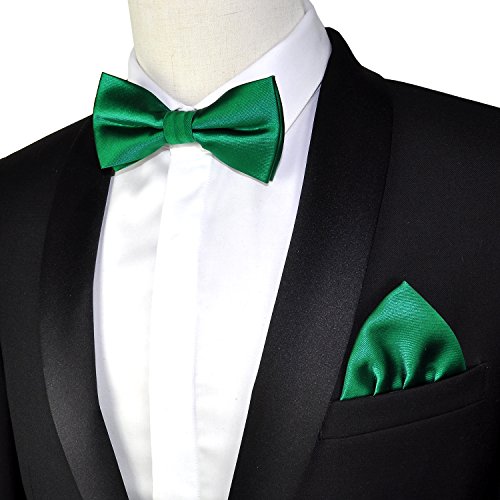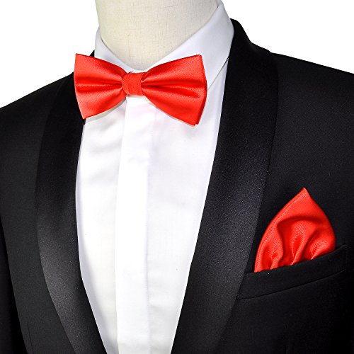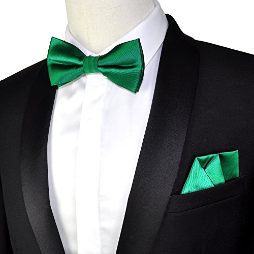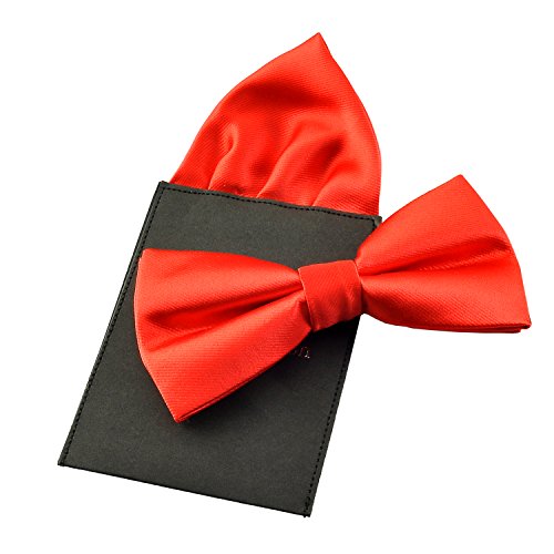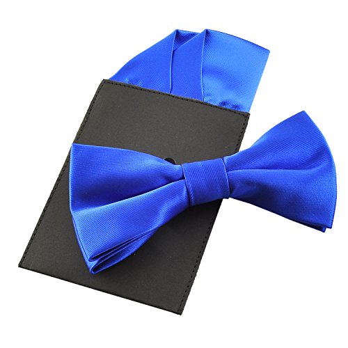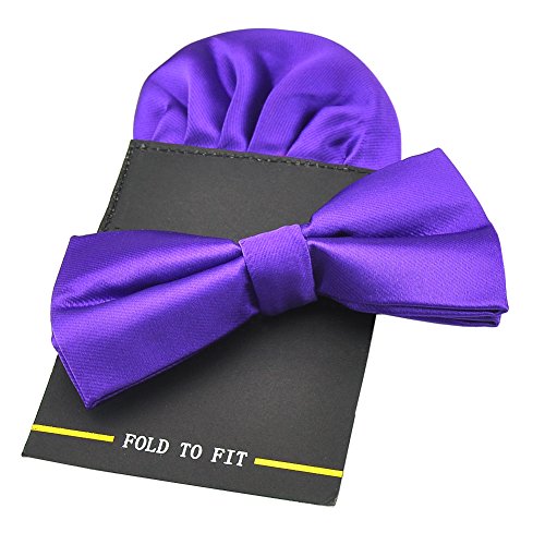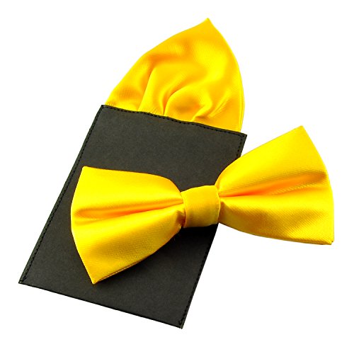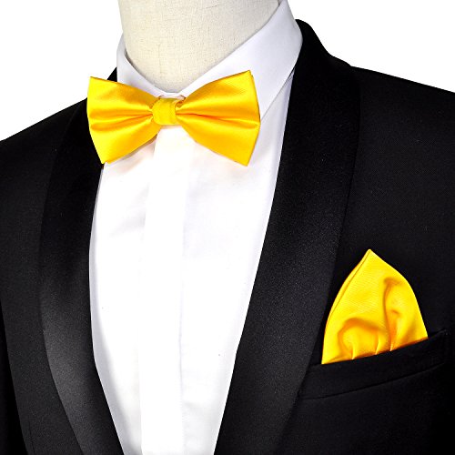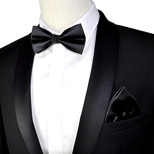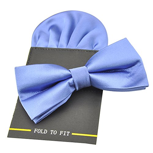 | (PenSee)/Accessories/Ties/DIRECT FROM USA/PenSee Mens Silk Solid Pre-Tied Bow Tie Hanky Card Set - Various Colors |