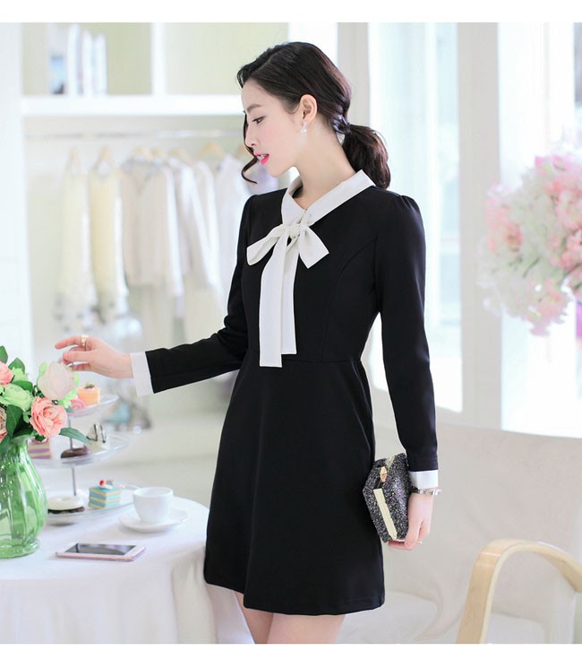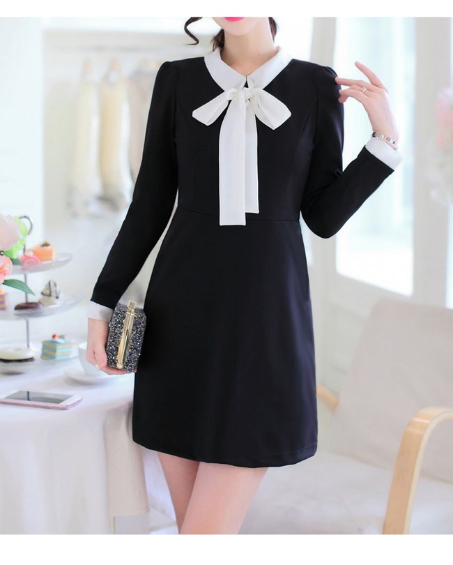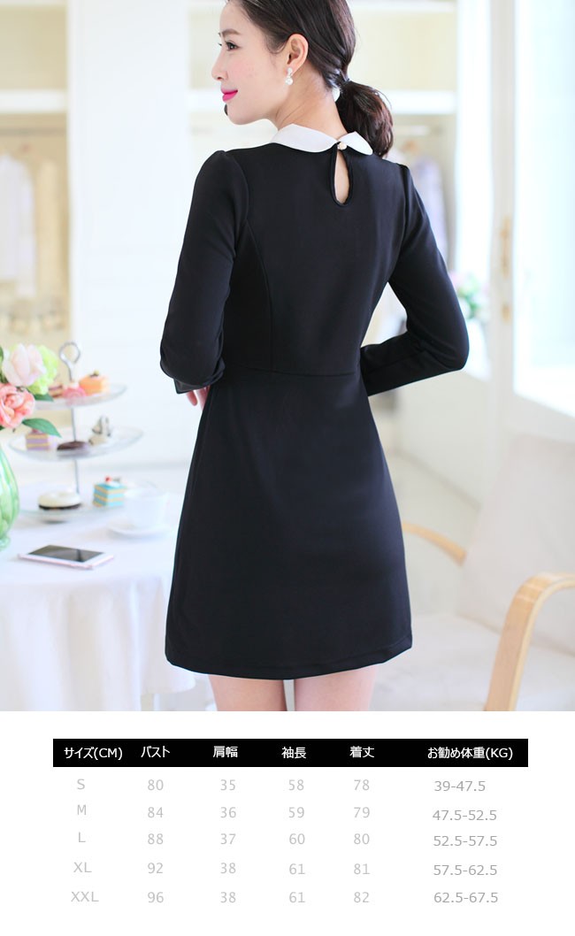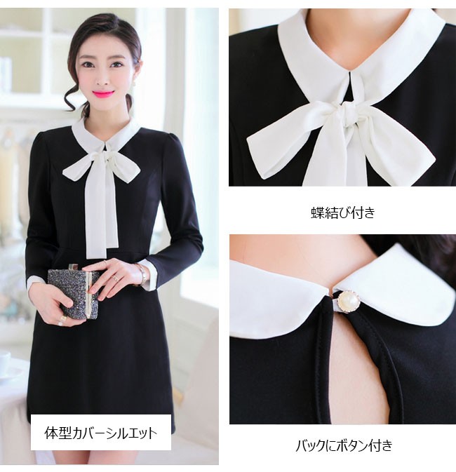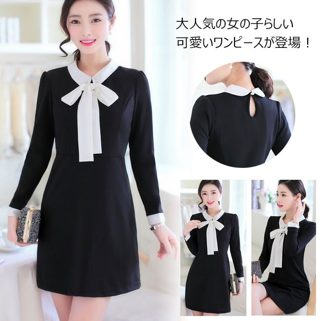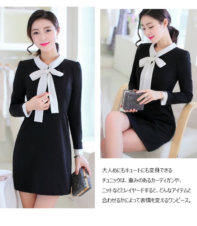 | 商品名 | 長袖ワンピース ミニ丈ワンピース インナーワンピース レディース ショート丈 蝶結び フレア 無地 ブラック ゆったり 体型カバー フェミニン |