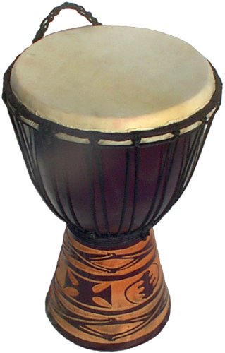 Studio : Turtle Island Imports Publisher : Turtle Island Imports Product Description These djembes are made in Bali from one piece of high grade Mahogany plantation wood with goatskin heads. They are rope tuned in the traditional style of Western Africa. The sound quality is excellent. 0