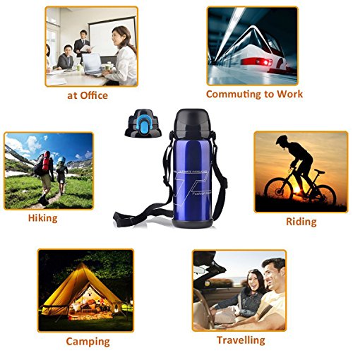 Travel Mug Stainless Steel Hiking Water Bottle Climbing Flask Keep Hot Cold Outdoor Coffee Thermos-27oz/800ml Blue
