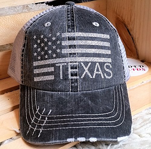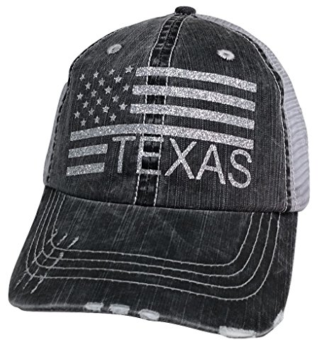 -. Binding : Apparel -. Brand : Loaded Lids -. Color : Grey Brown -. Department : womens -. Feature : Sparkly Texas design with American flag / Professional grade glitter design is hand applied in the USA / Fully adjustable back / One size fits most -. ProductGroup : Apparel -. ProductTypeName : HAT -. Size : One Size -. Title : Loaded Lids Women's Texas with American Flag Distressed Bling Baseball Cap