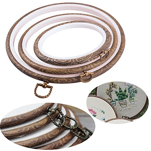 Embroidery Hoops Cross Stitch Hoop Ring Imitated Wood Circle Set Display Frame for Craft Handy Sewing 3Pcs