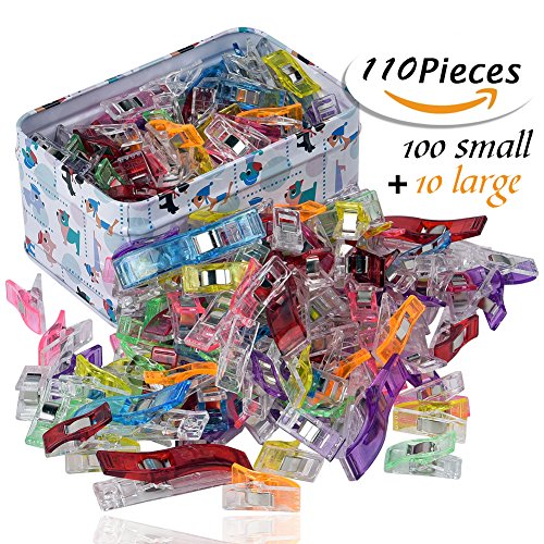 RAGNAROS Multipurpose Sewing Clips For Quilting Crafting With Tin Box Assorted Colors 110 Pack 2 Size100 Small 10 Large