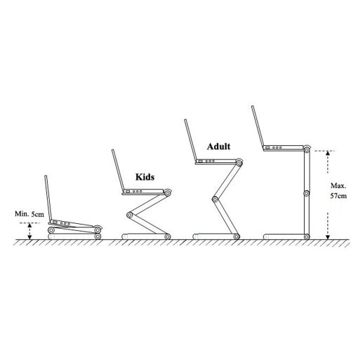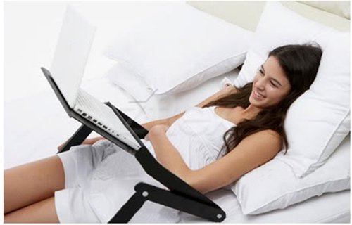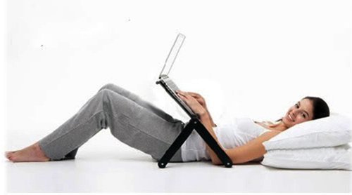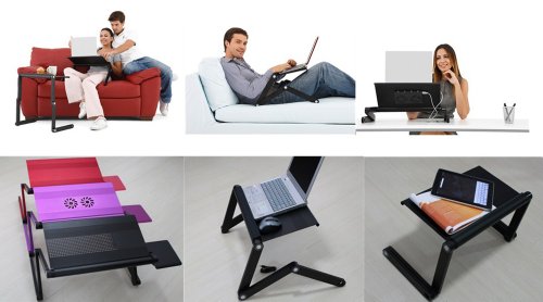 -. Feature : Highly human-oriented laptop desk. Powerful and Flexible, 360 degree adjustable / 2 Cooling Fans & 3 USB Hubs for pling other devices / Suitable to different situations and for different purposes. / Usage suitable: Laptop Desk, Mini Desk, Palette, Flower Shelf / Plate & Legs: Aluminum Alloy (Oxidation). Joint: ABS. Skidproof veins + silica gel for comfort.