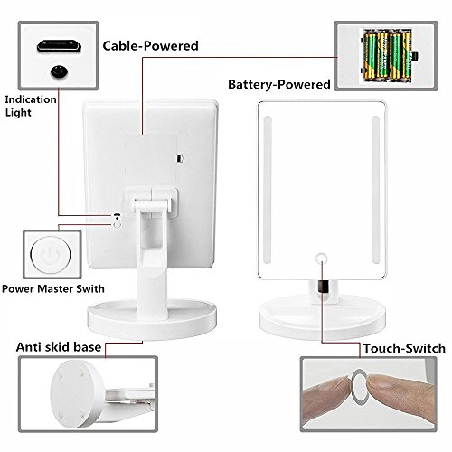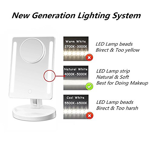 Gotofine LED Lighted Vanity Mirror / Natural Bright Light Makeup Mirror with adjustable 3.5 Inches 10x Magnification Spot Mirror, Movable & Two Power...
