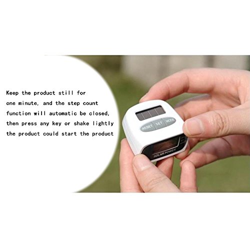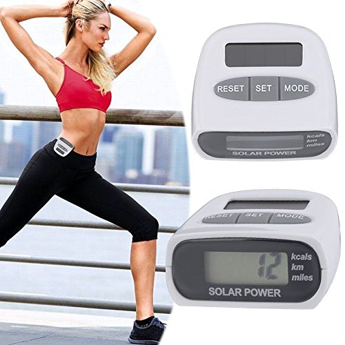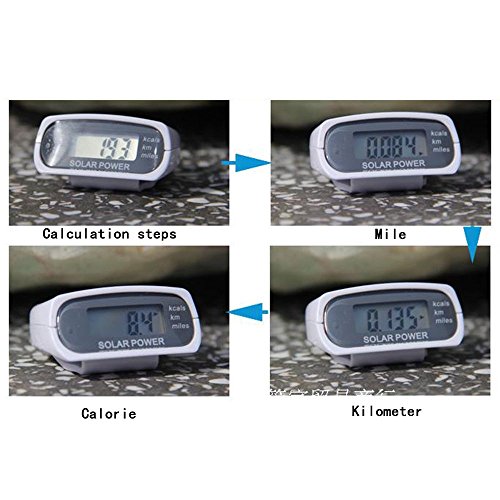 Studio : HuaYang Publisher : HuaYang Binding : Misc. Product Description Tired of buying batteries? This Solar Powered Pedometer features a built in rechargeable battery in which charges from the sun Description: Brand New and High Quality Environmentally friendly, Solar Powered Step count, distance count and calorie count. Automatically turns off if not in use for 1 minutes,?press any key or shake lightly the product could start the product Specification: Step count range: 0-99999. Distance range:0.000-99.999 miles/kilometers. Calorie range:0.0-9999.9 kcals. Step length range:30-120 cm, default value is 70 cm, adding 5 cm when adjusting Weight range:30-150 kg, default value is 60 kg, adding 5 kg when adjusting. Step count error: -5%. Size: 4.5 x 4.2 x 2 cm.? Package list: 1 x Solar Powered Pedometer 1 x English Instructions Please kindly Note: Items will be repackaged to save your shipping charge to be environmentally friendly. We guaranty the item will be protected well in buble bags, No retail box! 0