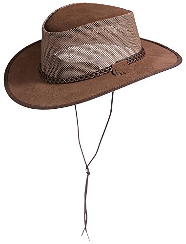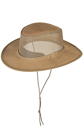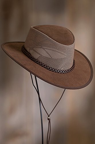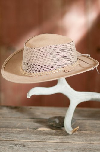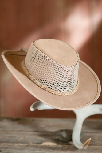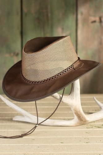 Studio : Overland Sheepskin Co. Publisher : Overland Sheepskin Co. Binding : Apparel Product Description If they don't say, "Nice hat," they'll sure be thinking it. The Monterey Bay Breeze is your portable all-weather shelter, with a waterproof leather 3" brim and top that block 100% UV and rain. The 4" crown of firm nylon mesh allows cool airflow while blocking 70% of the sun's rays. This handsome, lightweight hat includes a removable chinstrap and a Velcro sweatband. Don't leave home without it-it's crushable for packing. Brim: 3". Crown: 4". Made in the USA. Sizing (approximate circumference in inches): M (22.25"), M/L (22.5"), L (23.25"), XL (23.75"), XXL (24.5") 0 |