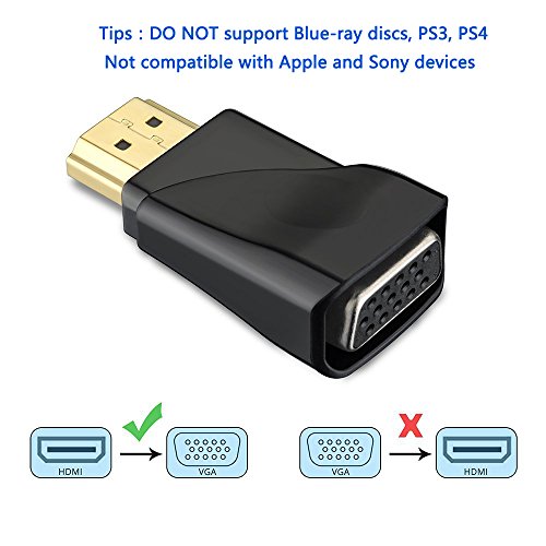 HDMI To VGA Video Adapter, Pictek Gold-Plated HD 1080P HDMI To VGA Adapter HDMI To VGA Converter Dongle For PC, Laptop, Desktop,DVD,TV,TV Box