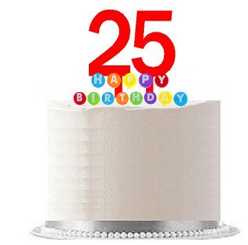 Item#025WCD - Happy 25th Birthday Party Red Cake Topper & Rainbow Candle Stand Elegant Cake Decoration Topper Kit