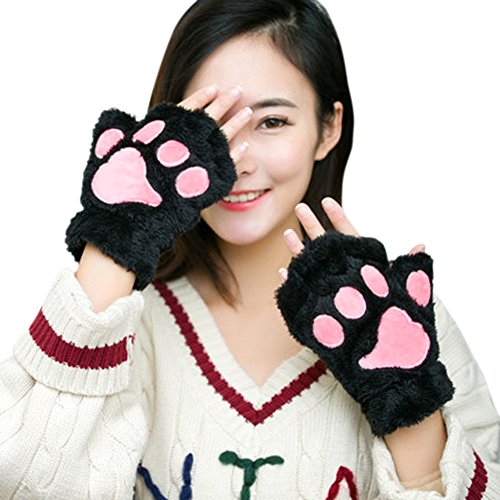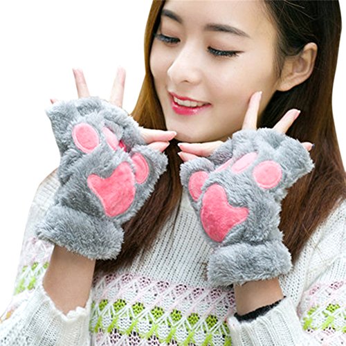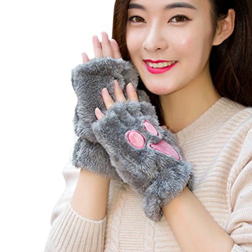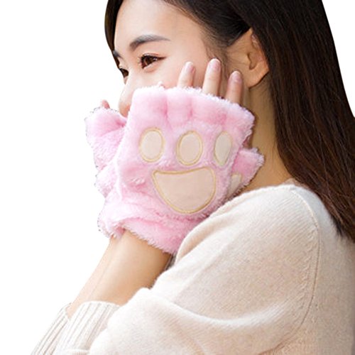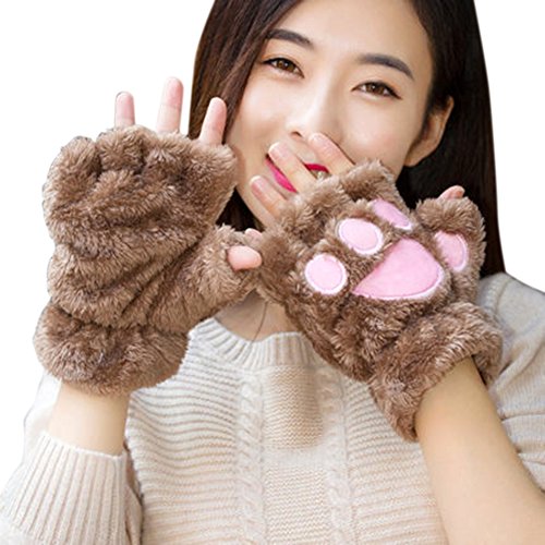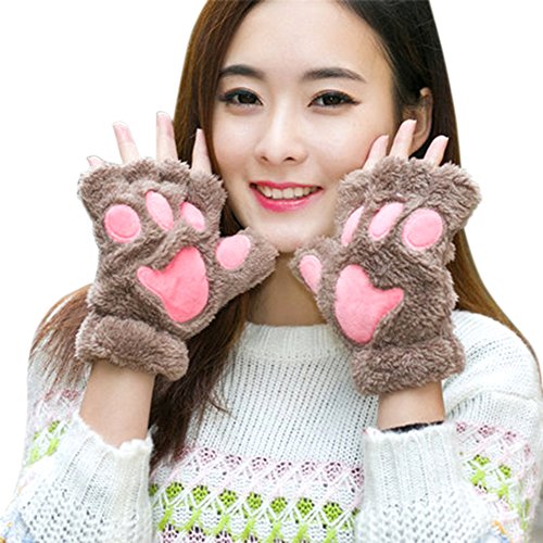 (GM Brost)/Accessories/Cold Weather Accessories/DIRECT FROM USA/GM Brost Girls Half Finger Plush Bear Palm Winter Mittens Gloves