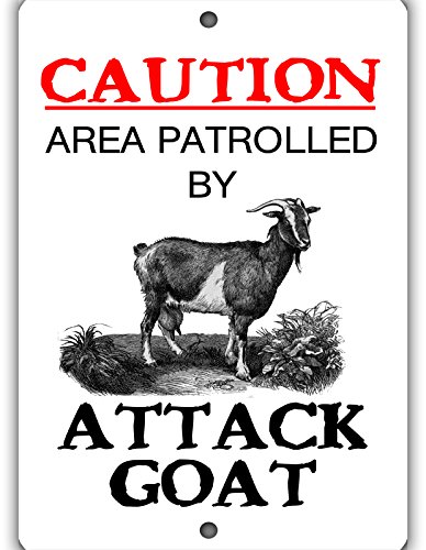 -. Feature : Attack goat sign measures 8" x 12" / Aluminum sign will not rust / High Gloss UV coating / Resistant to fading / Perfect gift for goat owner