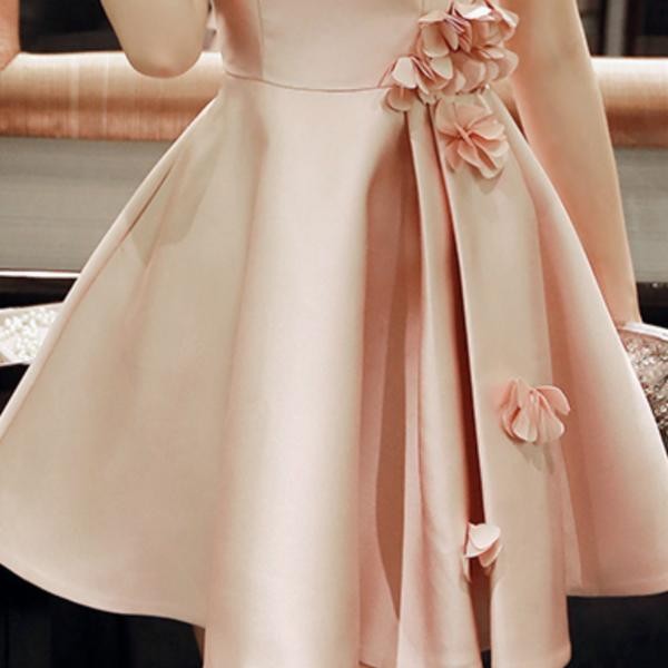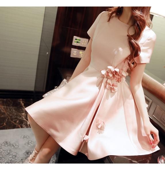 3Dフラワーモチーフ 半袖 Aライン パーティー フレアワンピース/ S