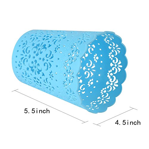 Saim 1 Pcs 4.5 inch Round Plastic Pencil Pen Holder Desk Organizer Blue