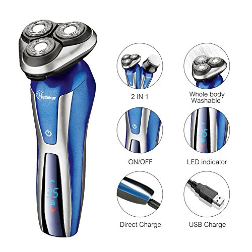 Hatteker Electric Razor Shaver Rotary Shaver Beard Trimmer for Men Wet and Dry Cordless Shaver Waterproof USB Rechargeable