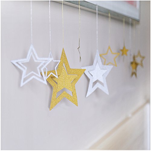Felice Arts Glitter Paper Garland Star Christmas Ornaments Hanging Star Ornaments Decorations,Pack of 14