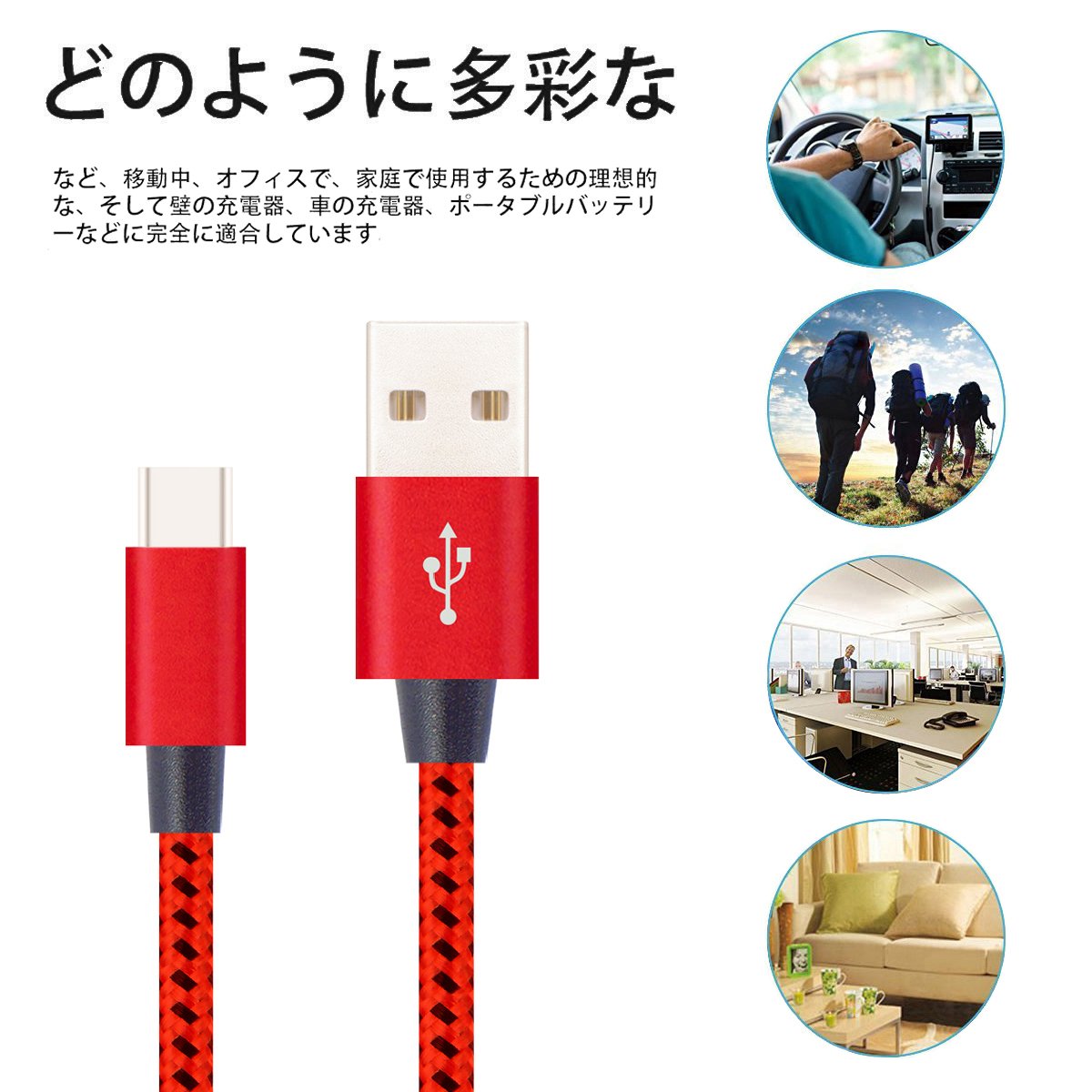 There are 3 kinds of lengths, it is possible to select according to the place to use.It can be conveniently used for living and sofa office etc. It is also long enough to charge at the rear seat of the car.