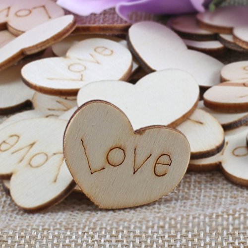 WINGONEER 300pcs Wooden Love Heart Wedding Table Scatter Decoration Crafts