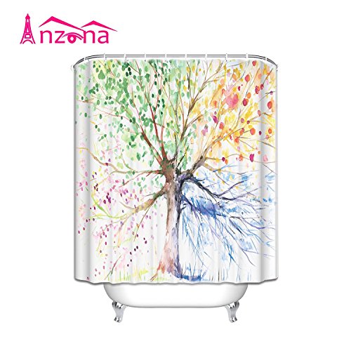 Anzona Waterproof Custom Fabric Bathroom Colorful Tree Art Print Four Seasons Shower Curtain 60x 72IN For Bathroom