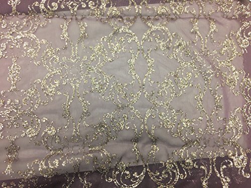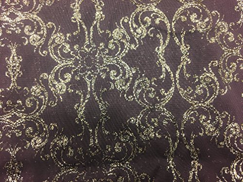 Mesh Stretch Fabric Eggplant Color with Pweter Silver Glitter Design ~ 2 Yds~ 58 "