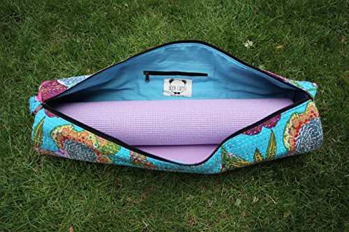 - Well made and durable, with zipper - made from durable 100% cotton embroidered by Indian craftsmen. This yoga mat bag feels sturdy and holds its shape thanks to a foam padding between the outer and inner lining. The full zip closure makes it easy to get your yoga mat in and out of the bag.