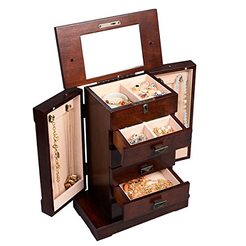 -. Title : Giantex Storage Chest Stand Organizer Armoire Jewelry Cabinet Box Necklace Wood