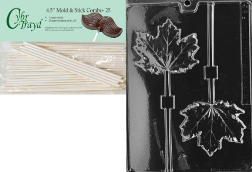 Cybrtrayd Large Maple Leaf Lolly Fruits and Vegetables Chocolate Candy Mold with 25 4.5-Inch Lollipop Sticks