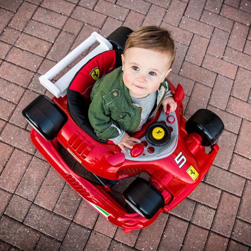Studio : Efigil Publisher : Efigil Binding : Baby Product Product Description The colorful Formula 1 themed Ferrari F1 Baby Walker by Efigil Corp provides a playful and stimulating experience for your child. The walker seat has a smaller footprint for easy mobility. The baby seat features a steering wheel, exciting sounds, buttons to push, and rattles for a safe, comfortable and fun place to play. This walker comes with a fully padded and easy to clean seat with three height adjustments. Assembly level/degree of difficulty: Easy. 0