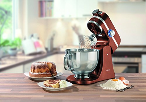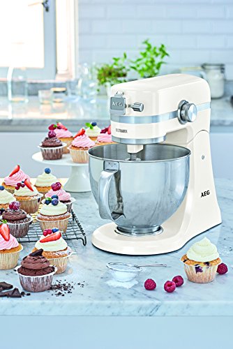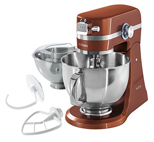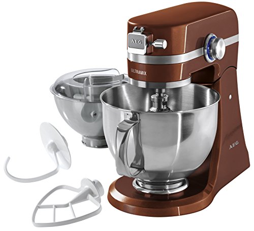AEG Kuchenmaschine UltraMix KM 4100 (10 Geschwindigkeitsstufen, 1,4 PS Motor, LED-Licht, Voll-Metall Gehause, 4,8 + 2,9 Liter Edelstahl-Ruhrschusseln, inkl. umfangreiches Zubehor)