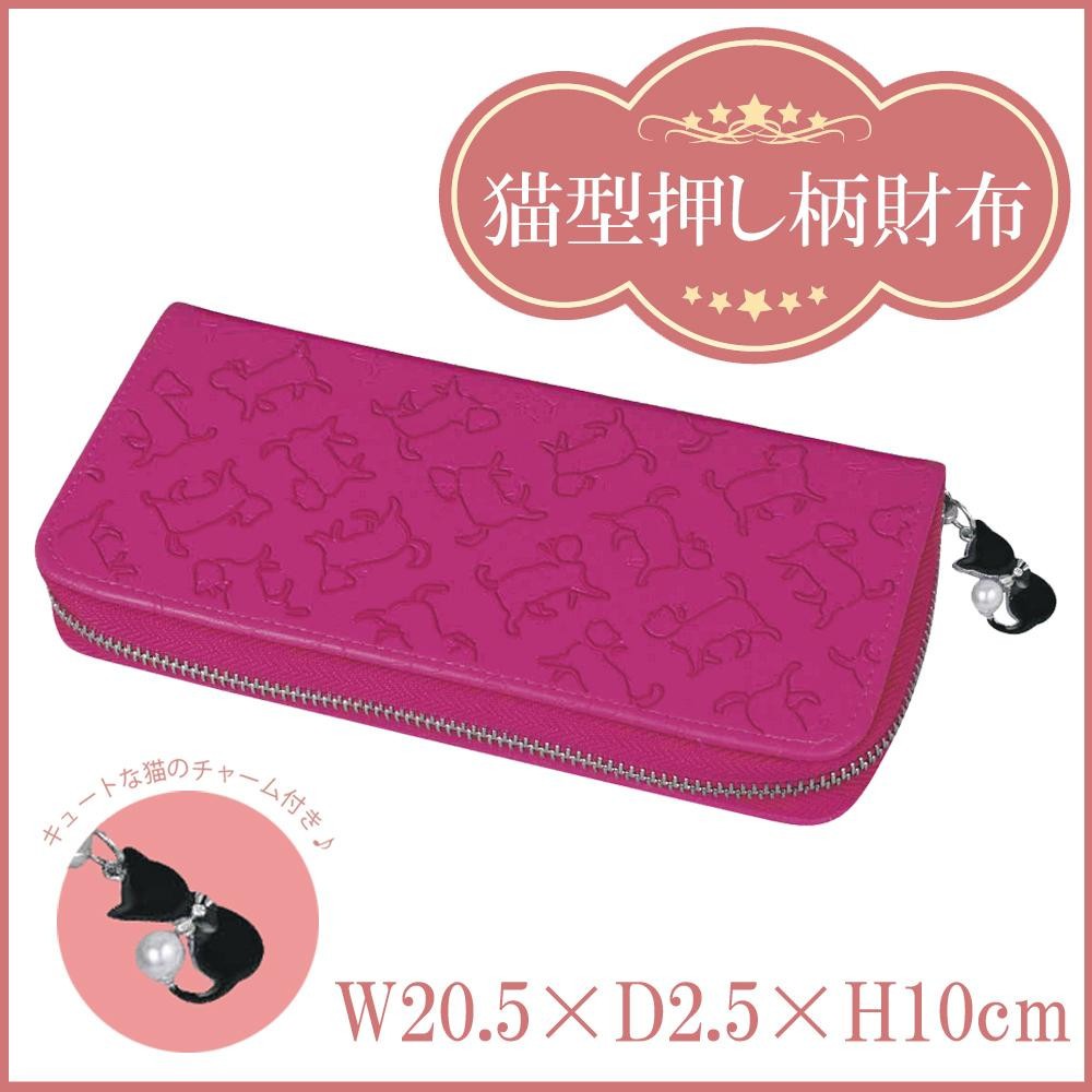 キュートな猫型押し柄の長財布です。ラウンドファスナーで大きく開けて出し入れもラクラク。カードは12枚収納できます。 |