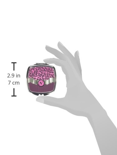 Rikki Knight Compact Mirror, Letter n Initial Light Pink Leopard Stripes Monogram
