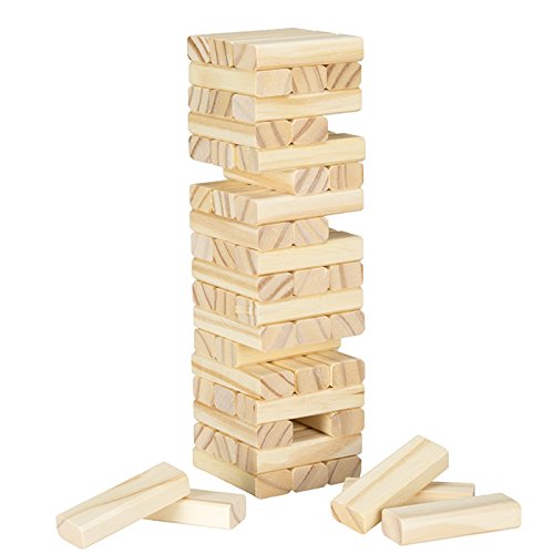 Studio : TMG Publisher : TMG Binding : Toy Product Description Desktop Wooden Wobble Stacking Game is for the young and young-at-heart! Combine skill and strategy to stack the 54 pieces of beautifully crafted pinewood as high as you can, without wobbling the stack, causing it to crash down. Small enough to play just about anywhere, it makes a nice gift or office accessory. The wooden pieces are carefully cut and sanded with beautifully beveled edges. Use different colored markers to write messages, making it the perfect medium for wedding, anniversary and birthday wishes. 54 blocks Constructed of beautifully crafted pinewood with beveled edges Blocks make the perfect medium on which to write wedding, anniversary and birthday wishes Dimensions: Overall: Length: 3 inches Width: 3 inches Height: 10.5 inches Each block: Length: 3 inches Width: 1 inch Height: .5 inches 0