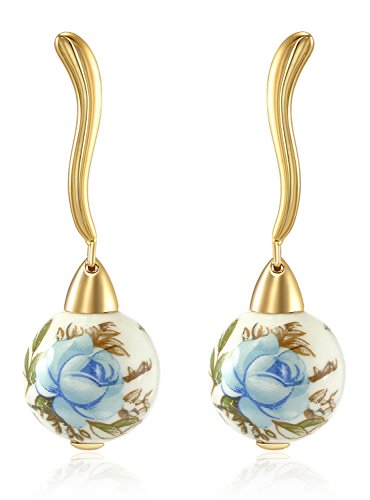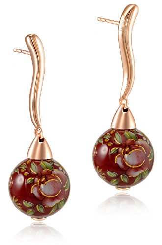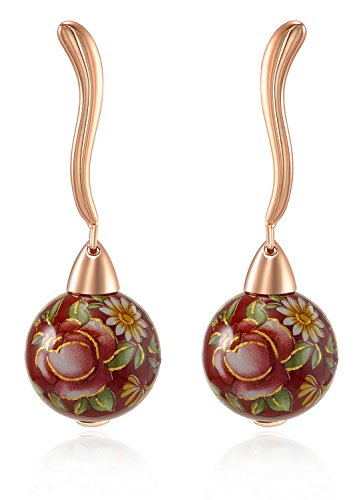 Rose gold plated sterling sivler ball earring featuring hand paint multicolor flower red base ball with curved shape studs. Imaging floral smell of exotic garden