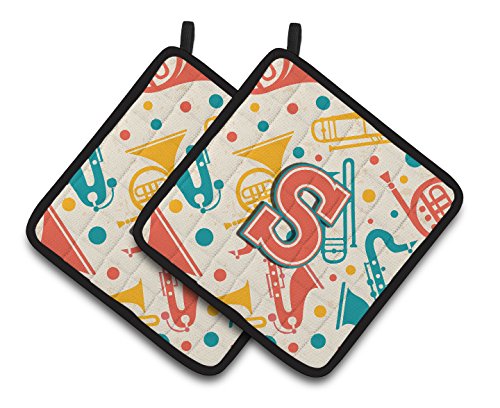 Caroline's Treasures Letter S Retro Teal Orange Musical Instruments Initial Pair of Pot Holders CJ2001-SPTHD, 7.5HX7.5W, Multicolor