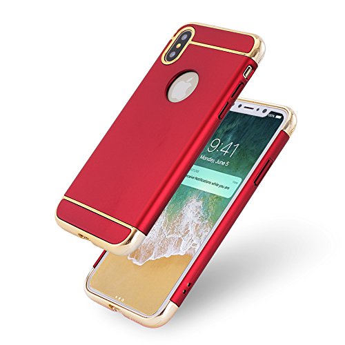 -. Title : RanLor iPhoneX Case iPhone 10 Case Luxury Electroplating Premium 3 In 1 Frosted Shockproof Plating Metal Texture Skin Protector Phone Case (Chrome Gold and Red)