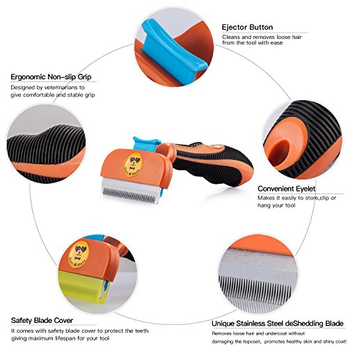 Are you sick or tired of dropping hair from your pets? Do you want to share home with your pets in a health environment? If yes, please choose the Bencmate professional shedding brush. It is quick and easy to remove the loose and dead undercoat whilst promoting healthier skin and shiny topcoat. Bencmate deshedding tool has different sizes for long hair and short hair. It is designed by pet professionals and beneficial for the health of your pets. The shedding tool with ejector button relieves stress from your pets from loose hair and keeps you and your family safe and healthy by keeping hair allergies at bay. Product details: