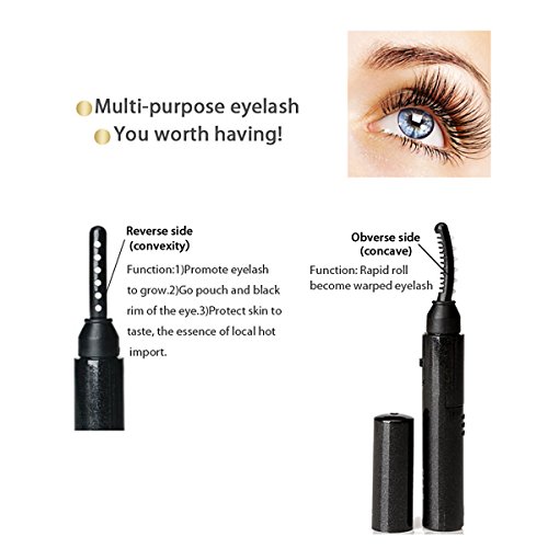 - MULTI-PURPOSE - Curling,Eye massage,Essence import and Promoting eyelashes growth. Concave is for curling - about 1 minute heating and two functions for temperature will Stereotype eyelashes and curling; Convexity is for massage - massage balls are made of senior non-toxic silicone, which can promote blood circulation,diminish black rim and pouch of the eyes and eyelashes growth with essence import.
