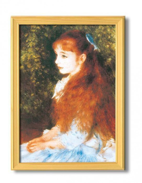 世界の巨匠ルノワールの名画「可愛いイレーネ」を本物により近く複製した、高級感のある名画額です。美しいルノワールの名画を落ち着きのある額にセットして、気軽にお部屋で鑑賞して頂けます。お手持ちのA3サイズの用紙などと差し替え出来ます。 |