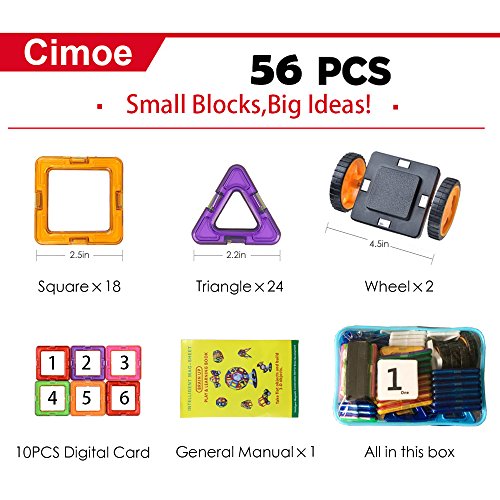 -. Title : Cimoe Magnetic Tiles Blocks -56 PCS Magnetic Building Blocks Set Magnet Learning Educational Toys for Kids Gifts