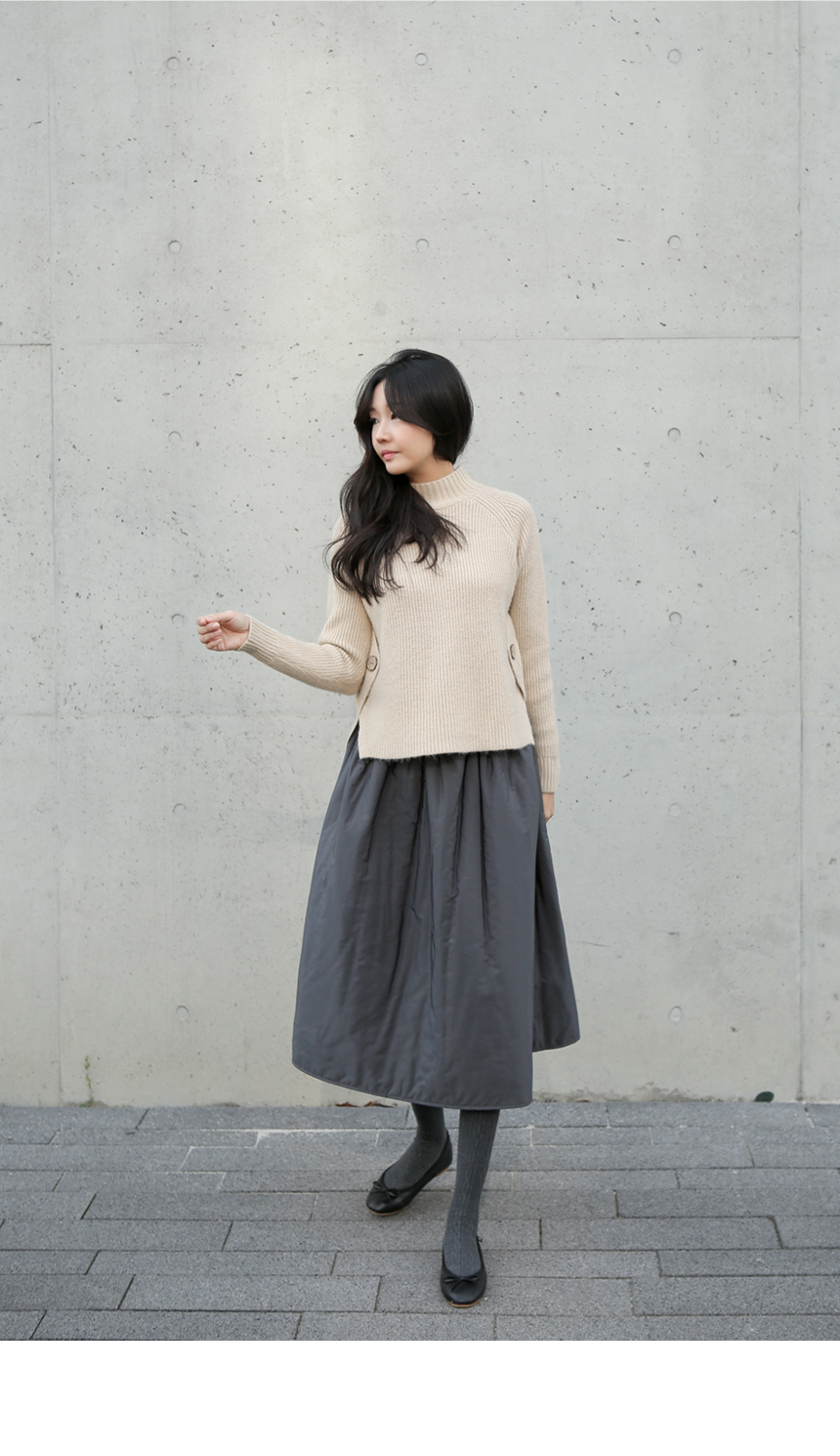 옆단추 반목 언발 니트옆단추 포인트의 반목 언발 니트
