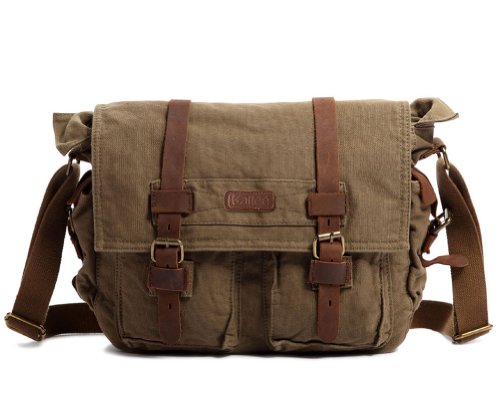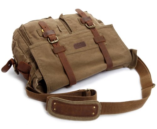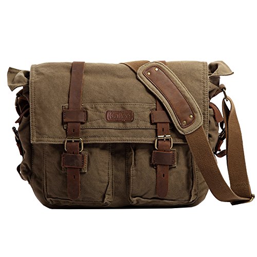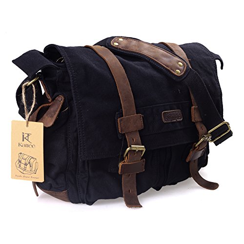 -. Title : Kattee Unisex's Classic Canvas Shoulder Messenger Bag Leather Straps X-Large