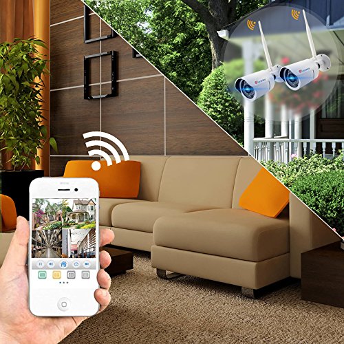 (TOUCH SCREEN)Wireless Camera System Home Security Camera Set (720p) Two Wi-Fi Video Surveillance Cams w/ Real-Time Touchscreen Monitor | Motion Detection, Night Vision | Indoor/Outdoor|Phone Remote