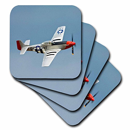 3dRose cst_97103_1 P-51D Mustang Fighter WWII War Plane-US50 BFR0014-Bernard Friel-Soft Coasters, Set of 4