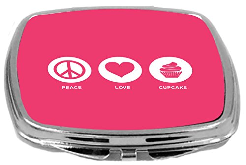 Rikki Knight Peace Love Cupcake Design Compact Mirror, Tropical Pink, 2 Ounce