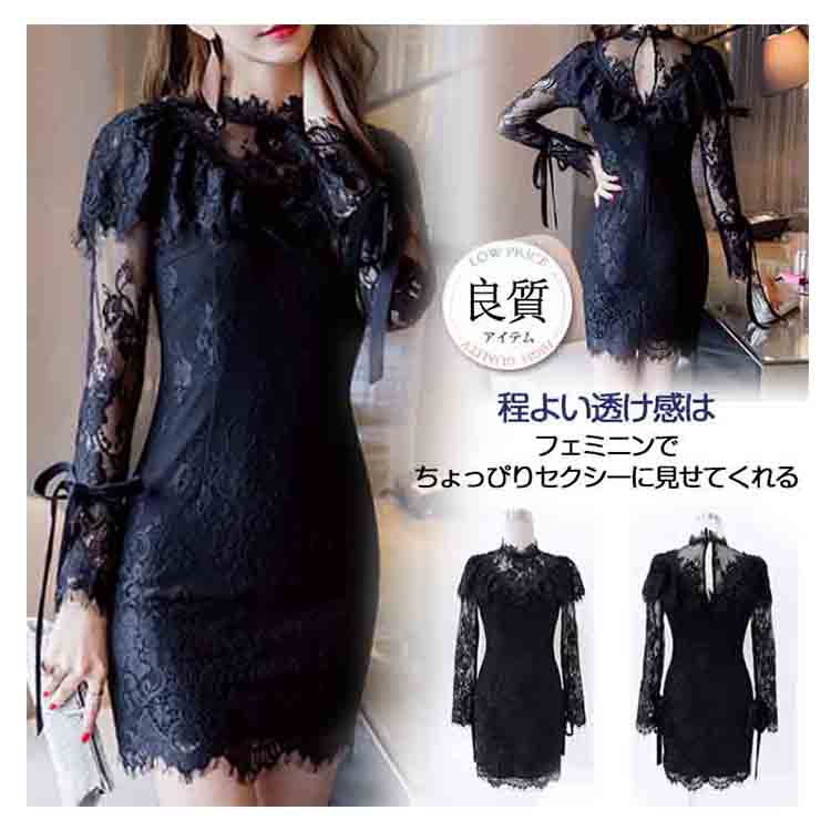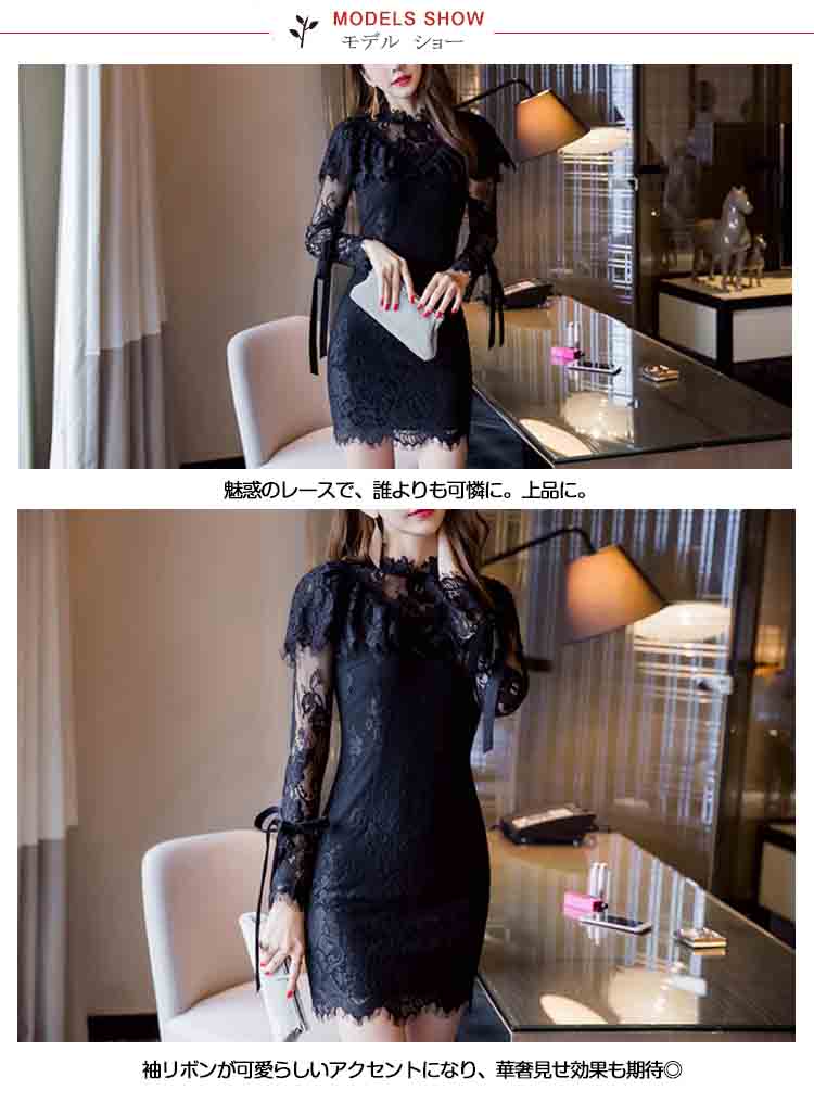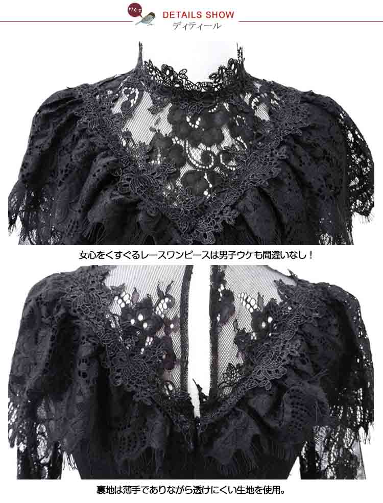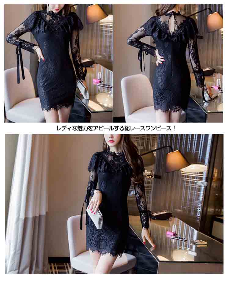 | 程よい透け感はフェミニンでちょっぴりセクシーに見せてくれる。魅惑のレースで、誰よりも可憐に。上品に。袖リボンが可愛らしいアクセントになり、華奢見せ効果も期待◎お呼ばれや食事会にも、アクセサリーを付ければパーティードレスとしても◎ 各??合レディな魅力をアピールする総レースワンピース! | |
