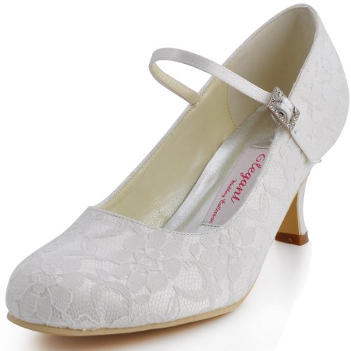 -. Title : Elegantpark EP1085 Women's Mary Jane Closed Toe Mid Heel Buckle Lace Bridal Wedding Pumps Shoes