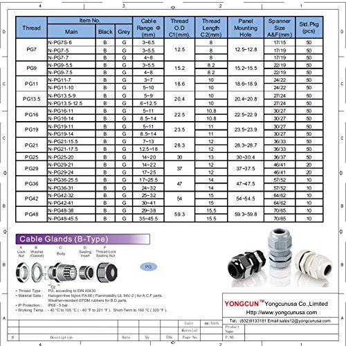 Yongcun Black Nylon Cable Glands Waterproof Cable Gland Joints PG7 Wire OD 3mm to 6mm Pack of 10pcs