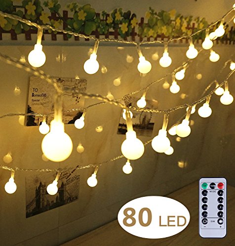 Mini Globe String Lights: 33ft/10m 80 LED Warm White Light Strip, 0.75 inches/1.9cm diameter bulbs.
