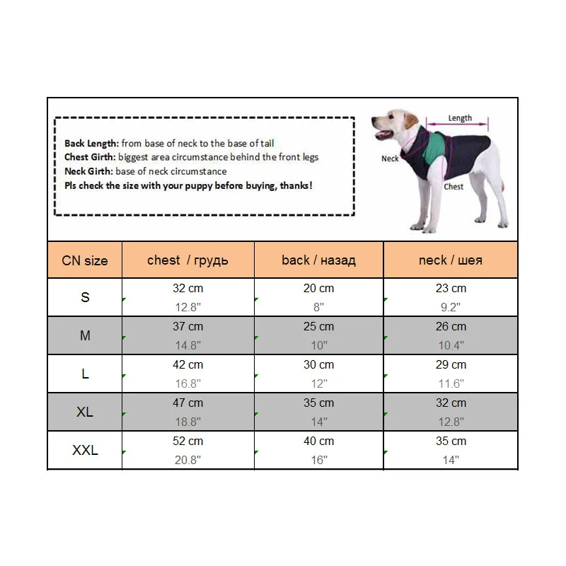 XXL size:chest 52cm, back 40cm, neck 35cm