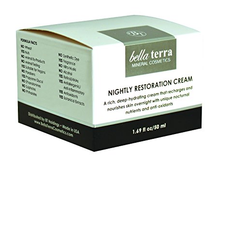 Studio : Bella Terra Cosmetics Publisher : Bella Terra Cosmetics Binding : Health and Beauty Product Description Great for all skin types but especially beneficial for sufferers of excessive dryness, bella terra restorative cream is a must for any nightly routine. While you sleep, our innovative red vitamin capsules burst, releasing vitamins a and e to go to work at full strength repairing, restoring and rejuvenating your skin. Avocado oil builds up over time acting as a natural sunscreen while its high level of potassium not only slows the aging process but even reverses it by reducing the appearance of sun and age spots and other hyper-pigmentations. This oil quickly and deeply penetrates the skin to intensely moisturize, making the product great for those with excessive dryness or eczema. Lactic acid also acts as a partner in the anti-aging process by gently yet effectively exfoliating and moisturizing the skin. Chamomile and allantois are added to soothe and calm the skin, reducing redness and swelling and taking away any irritation. As if these super additives couldn't do it on their own, we've added beeswax to support them and increase their benefit. Use this wonder cream nightly after applying any other products, then sleep soundly, knowing it is doing wonders for your skin. 0
