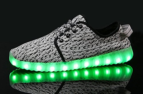 Quanfort LED shoes has 7 different colors and 3 different flashing ways. Press the switcher to change the colors.LIGHT MODES:1 red(steady) 2 green(st') 3 blue(st') 4 yellow(st') 5 skyblue(st') 6 purple(st') 7 white(st') 8-11 Light flash 12 light off